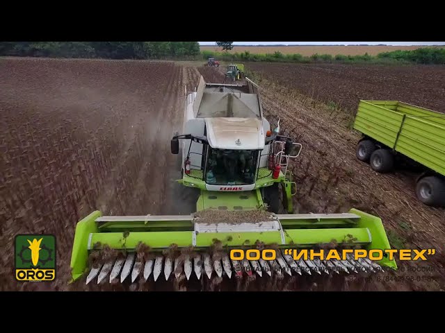 Уборка кукурузы на корнаж жаткой OROS RUS