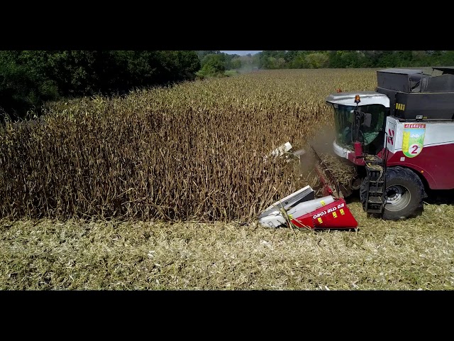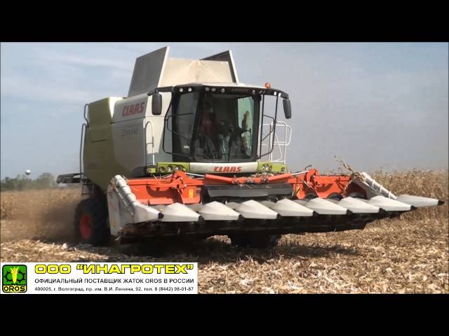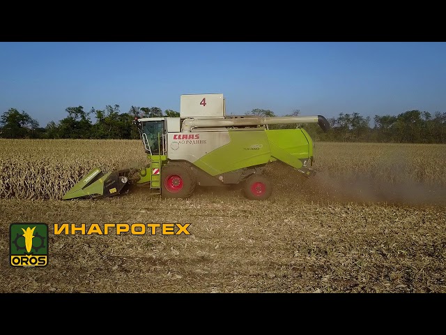 Уборка кукурузы жаткой OROS CORNADO на комбайне CLAAS TUCANO 450