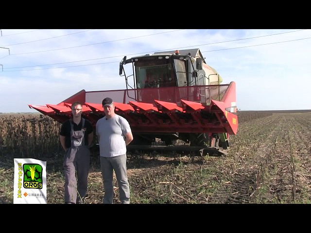 Работа жатки OROS SUN 8R с комбайном CLAAS LEXION 560