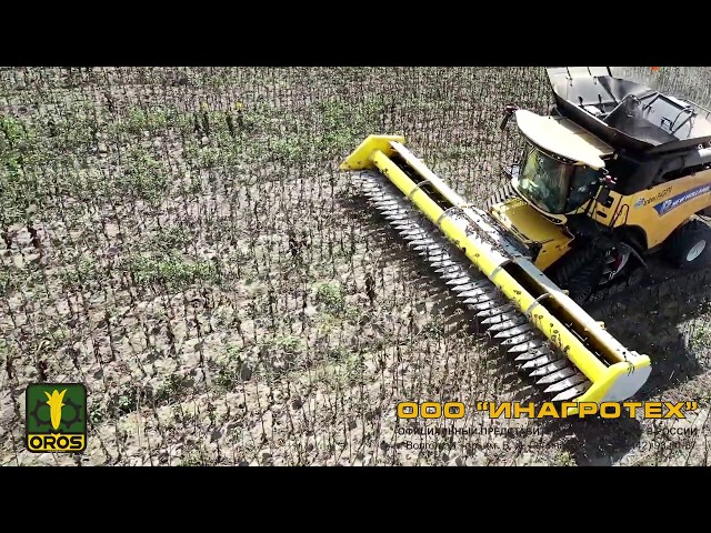 Уборка урожая подсолнечника жаткой OROS SUN